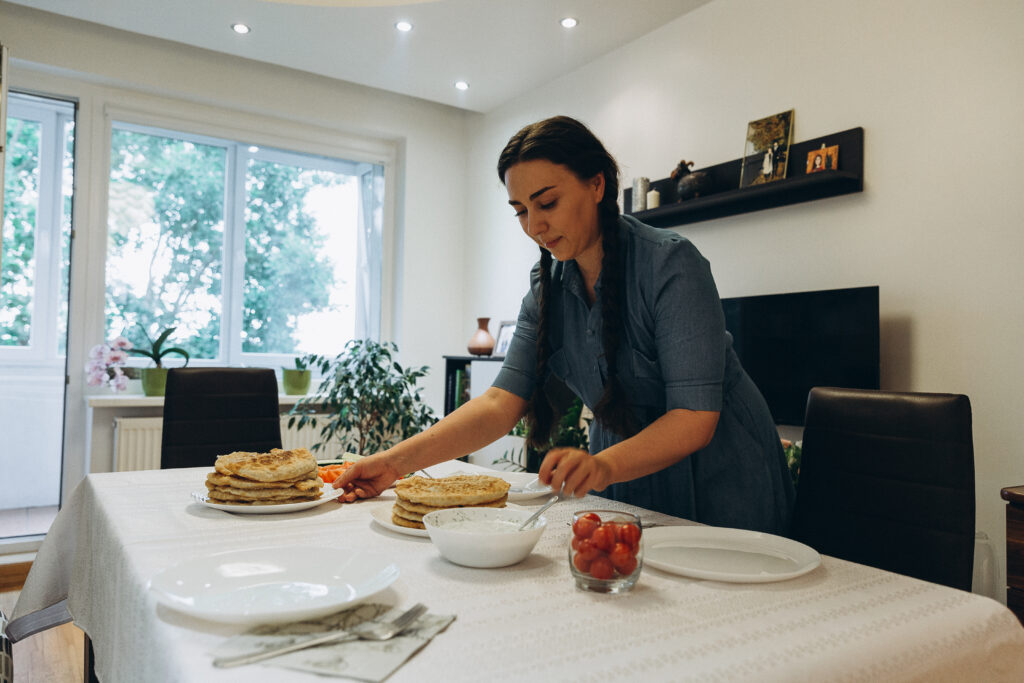 Preserving family recipes is an integral part of culture. So Susanna’s family has a special recipe for their national dish, chebureks. With every movement of her hands she is passing her heritage from one generation to another. The aroma of the dish fills the room, and feeling it, a sense of unity with the culture grows in your heart. But that’s not all. The heroine is making traditional coffee in a “turka”, a drink that gets people together for long conversations. Her hands, carefully following the process, convey a continuous flow of memories and a sense of belonging.