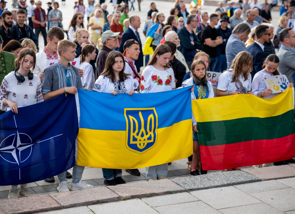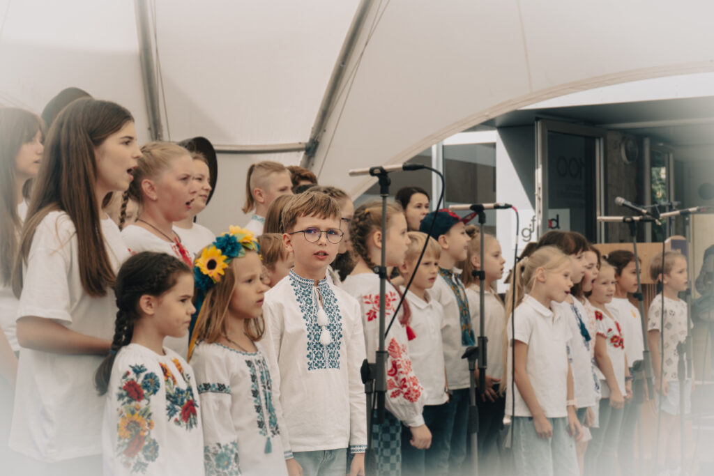 ENG: I ended up in Lithuania in March 2022 coming from my native Sumy region. I am very happy to be here as Lithuanians are incredible people who have supported my family and Ukraine. The photo shows Ukrainian children singing a song for Ukraine’s Independence Day 2023 at the Ukrainian Center. I really liked this particular photo as the festive atmosphere was so positive, and one of the boys looked at me, and I managed to catch “this moment”.