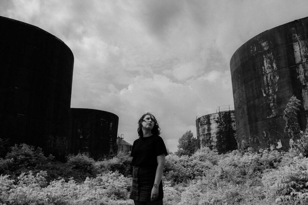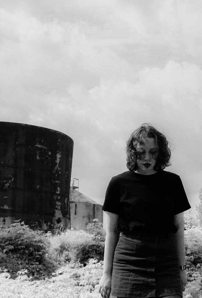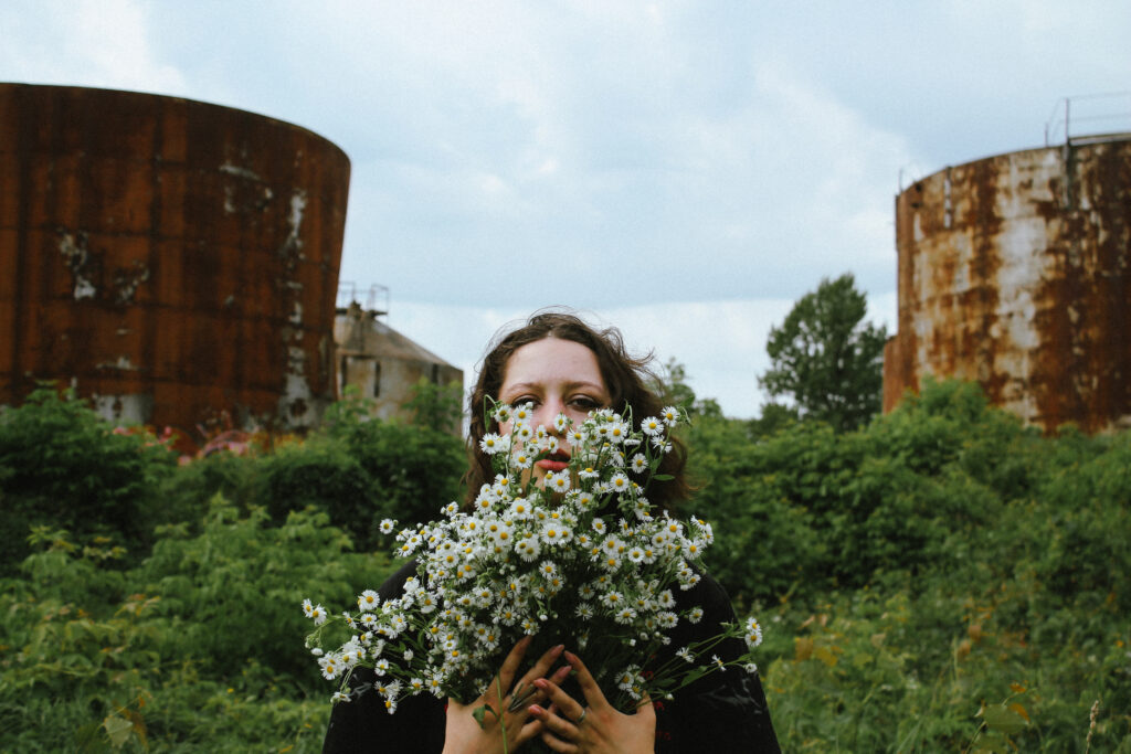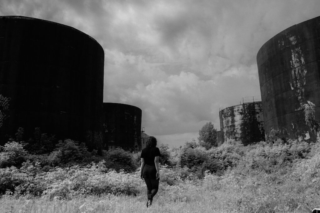 LT: Nuotraukoje Sofija, kaip ir aš, kilusi iš Mariupolio. Dabar mes, mariupoliečiai esame žmonės su baisia patirtimi. Bet štai Sofija yra ant apleistų cisternų, kur anksčiau buvo laikoma nafta ir benzinas iš rusijos. Dabar jos apaugę žole ir aprūdijo – tai yra buvusių rusijos turtų griuvėsiai.