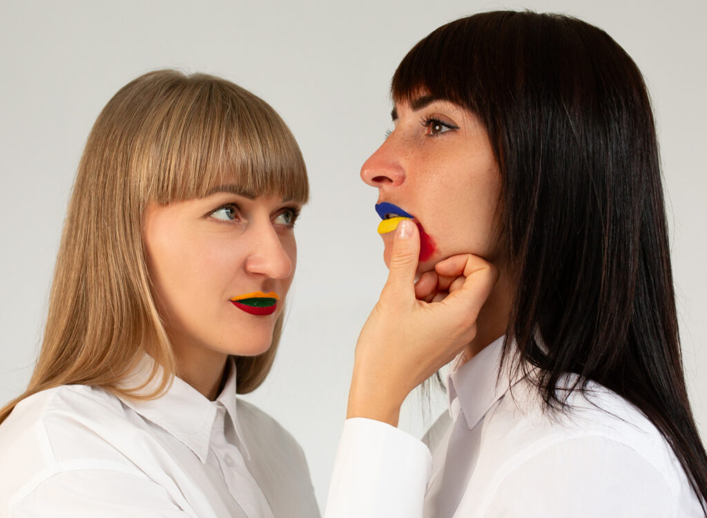 LT: Esu fotografė, jau atnaujinau savo veiklą Vilniuje. Iš karto kilo mintis apie tinkamą nuotrauką šiai parodai: dvi merginos, Ukraina ir Lietuva, to paties kraujo… Nuotrauka apie palaikymą, ryšį ir pagalbą.