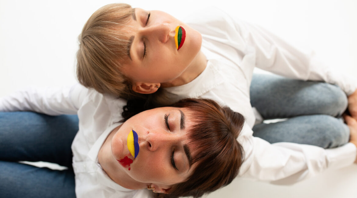 ENG: I am a photographer who has now resumed her work in Vilnius. The idea for the shoot came to me immediately: two girls, Ukrainian and Lithuanian, and one is bleeding… The photo is about support, connection and help.