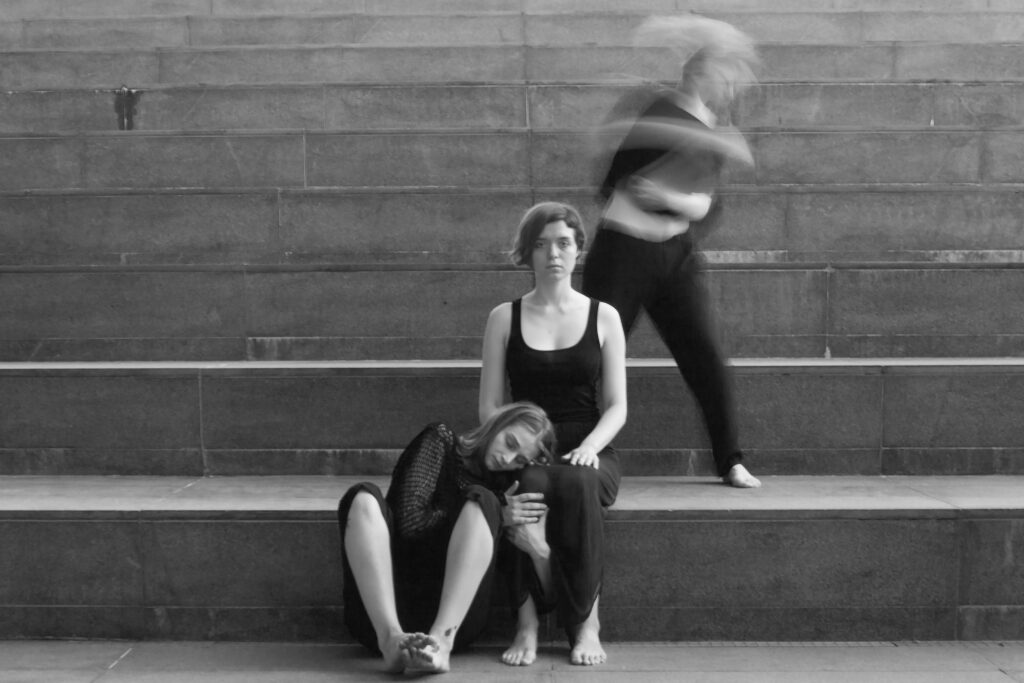 ENG: Heroes: Daria Parasochka, Hanna Hordeieva, Hanna Sergienko. We are the actors of the playback theater “Vakhtery” from Kharkiv who happened to come to Lithuania a few days before the start of the full-scale invasion. Playback is a narrative social improvisational theater where actors play the stories of the audience without preparation or texting. We give Ukrainians and Lithuanians a space for joy and grief, a chance to get to know themselves and make new friends. We are looking to find ourselves and discover our mission in this space, assimilating the audience’s experience, and simply making art.