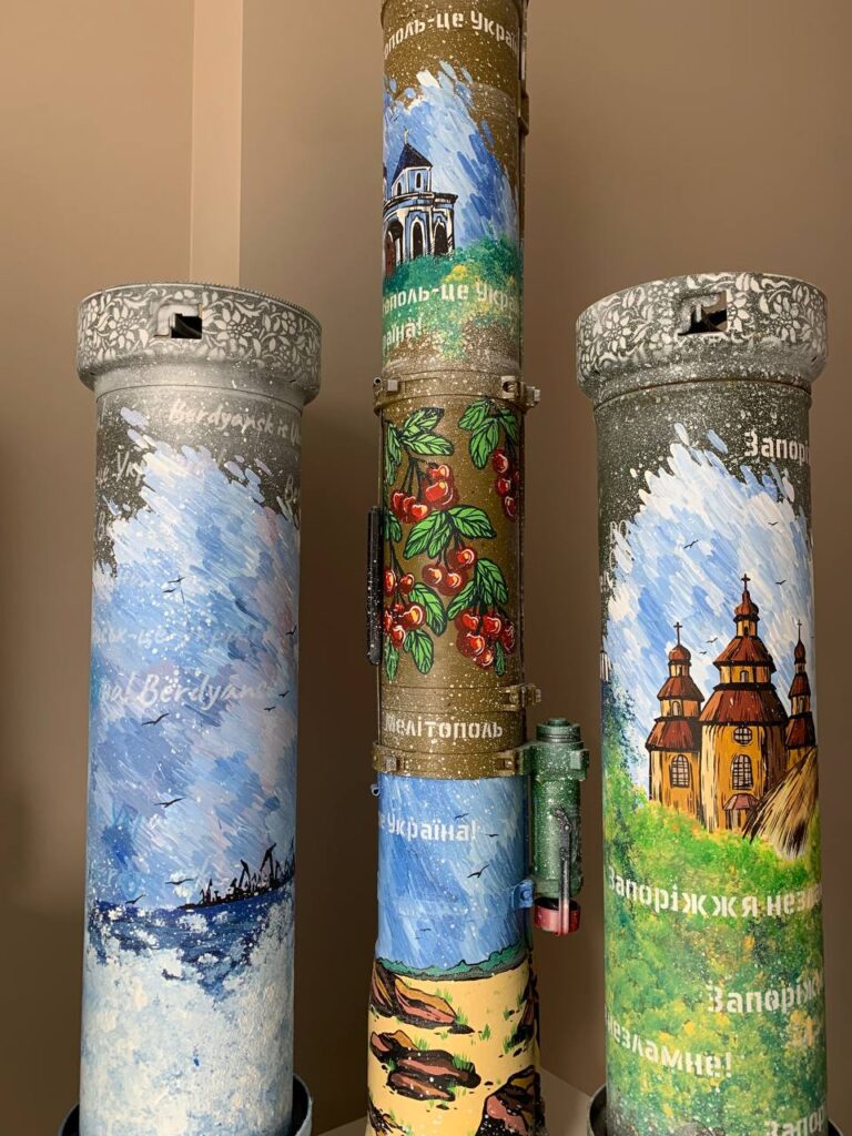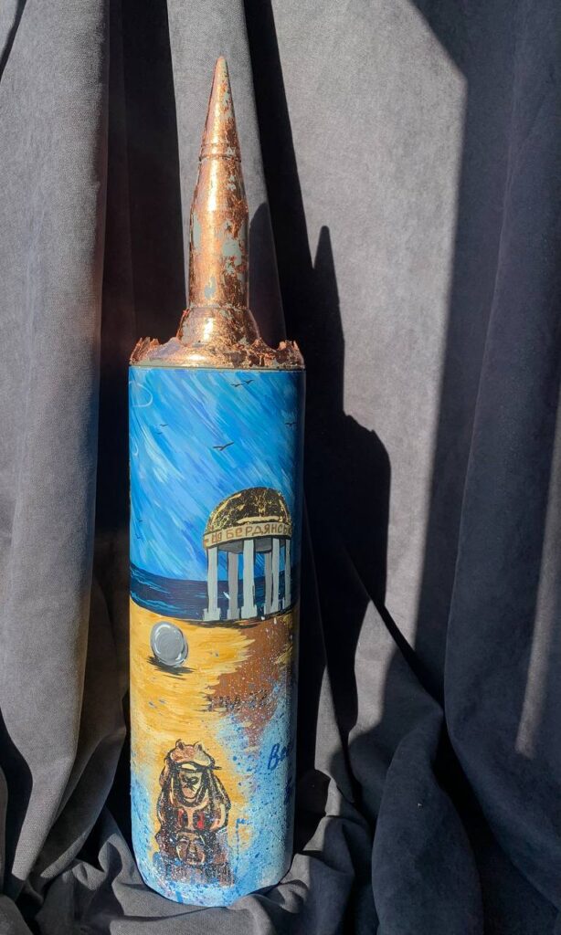Розпис тубуса, гільзи чи ракети залежить від їхніх розмірів і того, який саме малюнок хочуть волонтери. Якщо потрібно зобразити абстракцію, наприклад, квіти чи море, — це займає чотири-п’ять днів. Більше часу йде на відтворення міст — тиждень-два. Марія зображувала для аукціонів Бердянськ, Запоріжжя, Київ і Мелітополь.