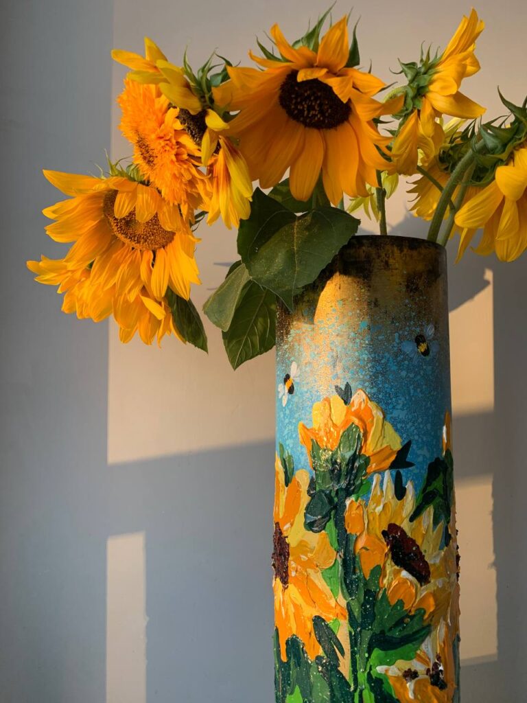 “Малюю квіти, бо вірю: попри те, що у нас зараз важкі часи, Україна розквітне. Завдяки цьому у мене виходять такі сонячні роботи, які всім подобаються. За час вторгнення я виробила свій стиль, за яким мене впізнають. На моїх картинах з’явилось більше квітів, гарних краєвидів та патріотичного духу”, — ділиться Марія.