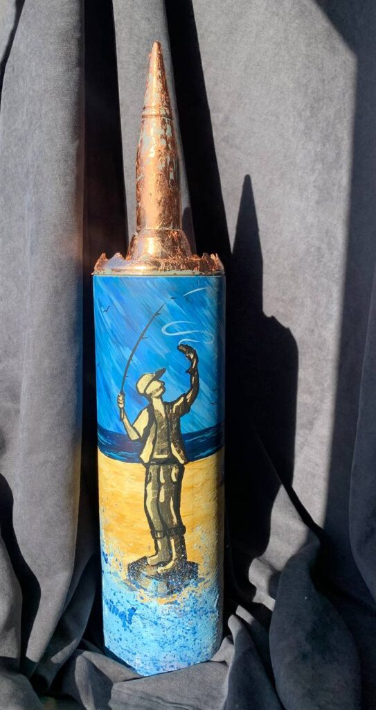 “Волонтери передають мені гільзи, тубуси, я їх безплатно розписую і відправляю назад. Виняток був одного разу, коли я взяла гроші за матеріали, адже малювала на великій частині ракети і витратила дуже багато барв. Тоді зі мною сконтактували хлопці з 95-ї окремої десантно-штурмової бригади і сказали, що є гарна частина від ракети. Захисники захотіли, щоб я там намалювала поле з квітами”, — розповідає художниця Марія.